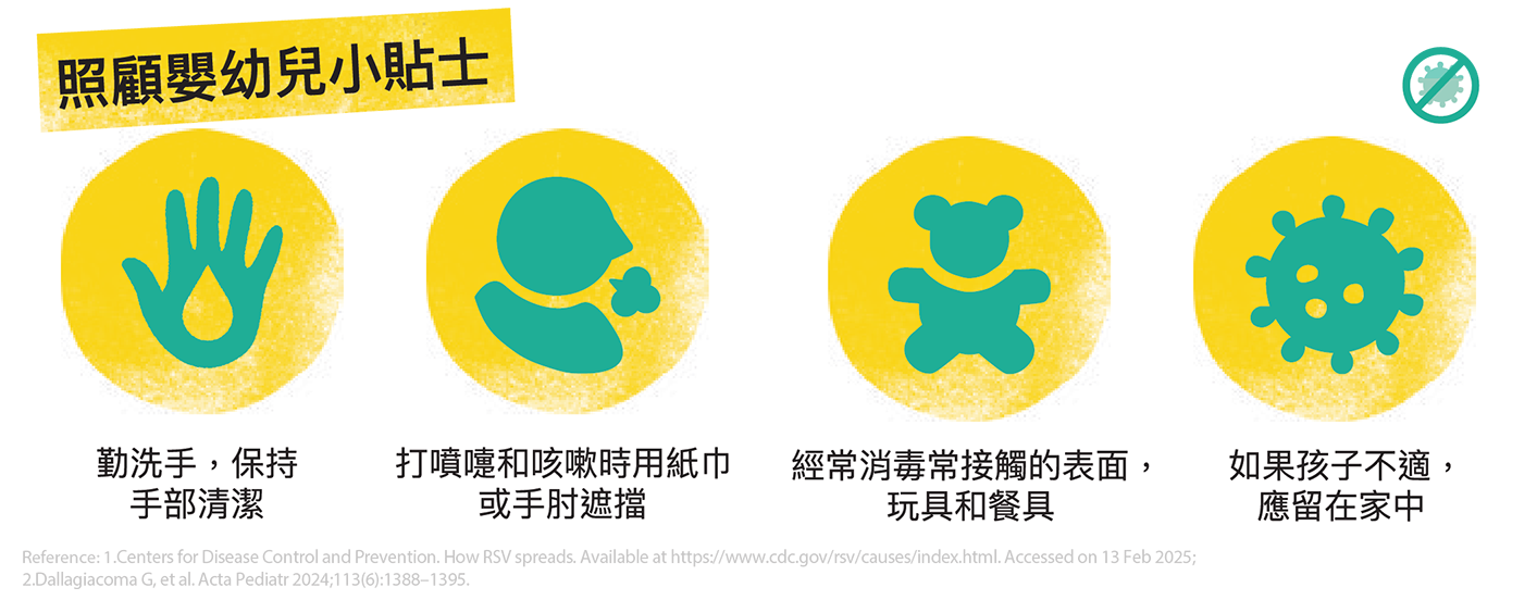 - 現時最有效而且獲世界衛生組織 (WHO) 推薦的預防方法是注射RSV長效單株抗體,尤其是新生嬰兒及高危群體