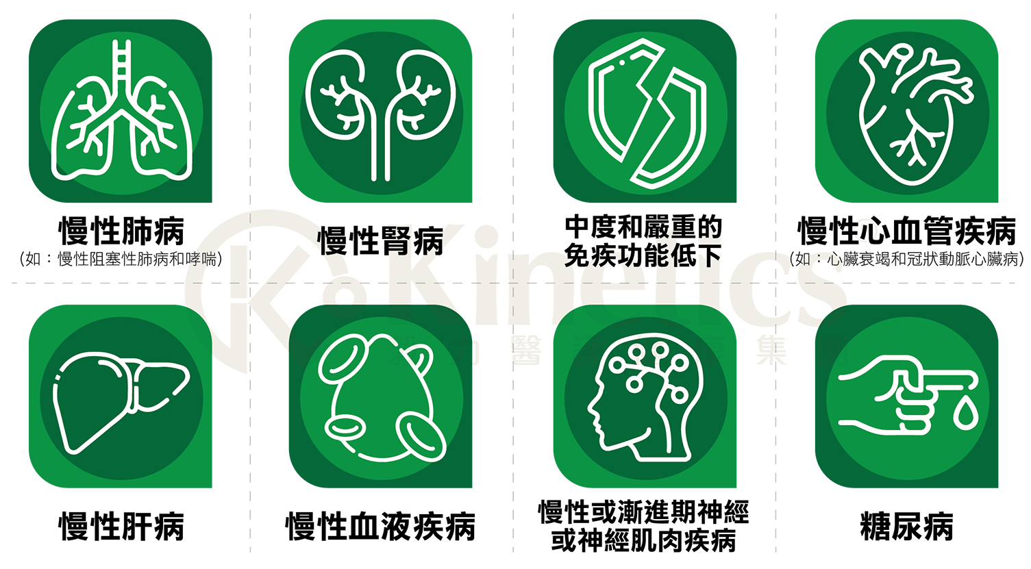 - 早產嬰兒、患有先天性呼吸系統疾病或心臟病的兒童,出現重症或併發症機率較高